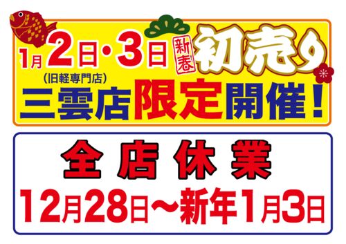 こんにちは、ウッドベルの井上です!本年も残すところあとわずか。年末年始のご案内をさせて頂きます! 年末年始は、メールの返事が遅れる事がございます。 ご了承ください。 年末年始 初売りのご案内 ウッドベル 三雲店12月28日~1月1日まで休業 1月2日より…
